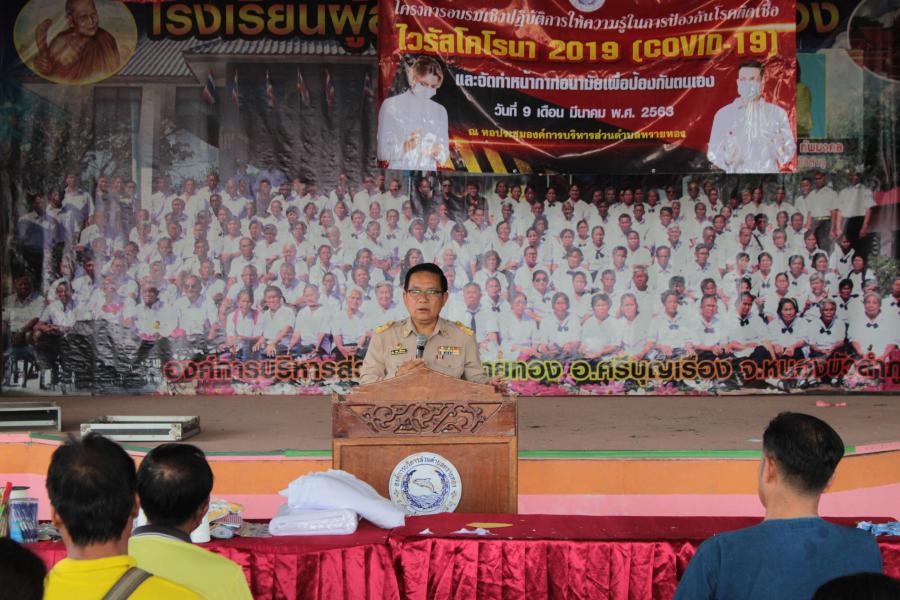 วันที่ 9 มีนาคม 2563 นายสุเมธ ศรีสงคราม นายกองค์การบริหารส่วนตำบลทรายทอง เป็นประธานในพิธี เปิดโครงการอบรมเชิงปฏิบัติการให้ความรู้ในการป้องกันโรคติดเชื้อ ไวรัสโคโรนา 2019 (COVID-19) และจัดทำหน้ากากอนามัยเพื่อป้องกันตนเอง ให้ประชาชนได้มีความรู้และมีส่วนร่วมไม่ให้เกิดการแพร่กระจายหรือขยายวงกว้างเพิ่มขึ้น ส่งผลกระทบต่อการดำเนินชีวิตของประชาชน โดยมีผู้เข้ารับการอบรมจากบุคลากร กำนันและผู้ใหญ่บ้าน ผู้นำชุมชน อาสาสมัครในพื้นที่ (อาสาสมัครสาธารณสุขประจำหมู่บ้าน (อสม.)) กลุ่มสตรี จิตอาสา และประชาชน ร่วมกิจกรรม S:0