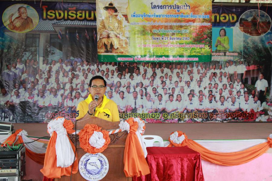 วันที่ 21 สิงหาคม 2562 นายสุเมธ ศรีสงคราม นายกองค์การบริหารส่วนตำบลทรายทอง เป็นประธานในพิธีเปิด โครงการปลูกป่า เพื่ออนุรักษ์ทรัพยากรธรรมชาติและสิ่งแวดล้อม เฉลิมพระเกียรติเนื่องในโอกาสมหามงคลพระราชพิธีบรมราชาภิเษก ณ บริเวณพื้นที่ป่าไม้ขององค์การบริหารส่วนตำบลทรายทอง จัดโดยงานเกษตร สำนักปลัด องค์การบริหารส่วนตำบลทรายทอง โดยมีคณะผู้บริหาร สมาชิกสภา ข้าราชการ พนักงาน ครู นักเรียน และประชาชน ร่วมกิจกรรม เพื่อรณรงค์ให้ทุกภาคส่วนได้มีส่วนร่วมในการปลูกป่า ฟื้นฟูและเพิ่มพื้นที่ป่าให้อุดมสมบูรณ์ เพิ่มพื้นที่สีเขียวปลูกจิตสำนึกสร้างความตระหนัก มีส่วนร่วมในการดูแลรักษาป่า และหวงแหนทรัพยากรป่าไม้ S:0